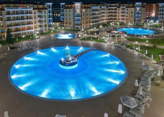 Beliggende 1 km fra Disco Den Glade Viking, har Royal Sun Complex Lejlighed ferielejlighed en række af faciliteter, herunder 24 timers security og et vekselkontor. Dette 65 m^2 store lejlighed ligger i nærheden af Lazur og har en privat pool.